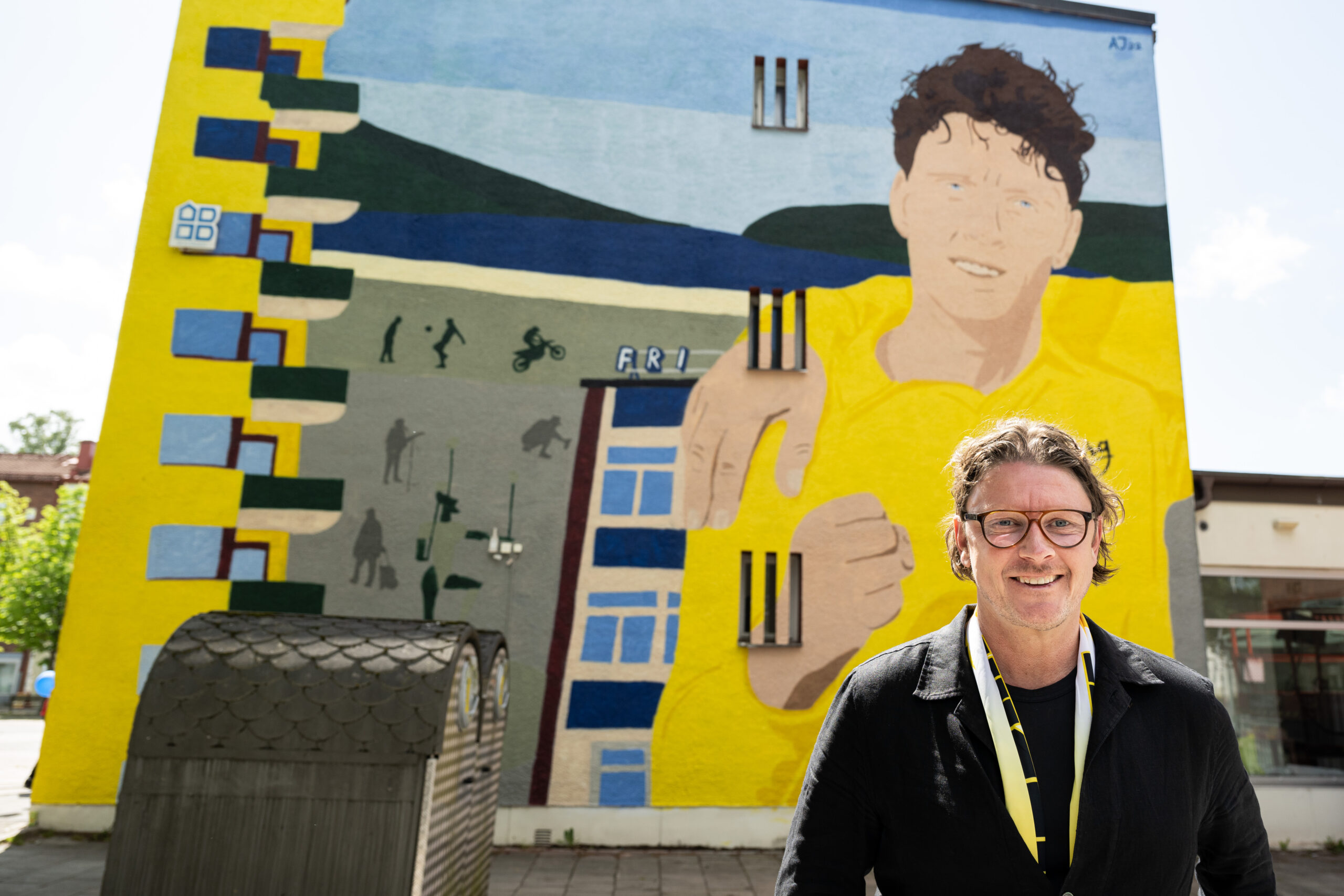 Elfsborgs klubbchef Stefan Andreasson hedras med en muralmålning på sjöbotorg den 11 juni 2022 i Borås.